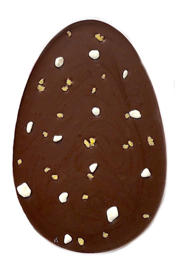 Bursting with a subtle lemon zing from the natural Sicilian lemon oil extract, this seasonal 'egg- shaped' slender slab of rich 70% dark chocolate is topped with crunchy lemon flavour crystals and sweet meringue, so the result is an eye catching, delicious mixture of flavours and textures to tickle the tongue.